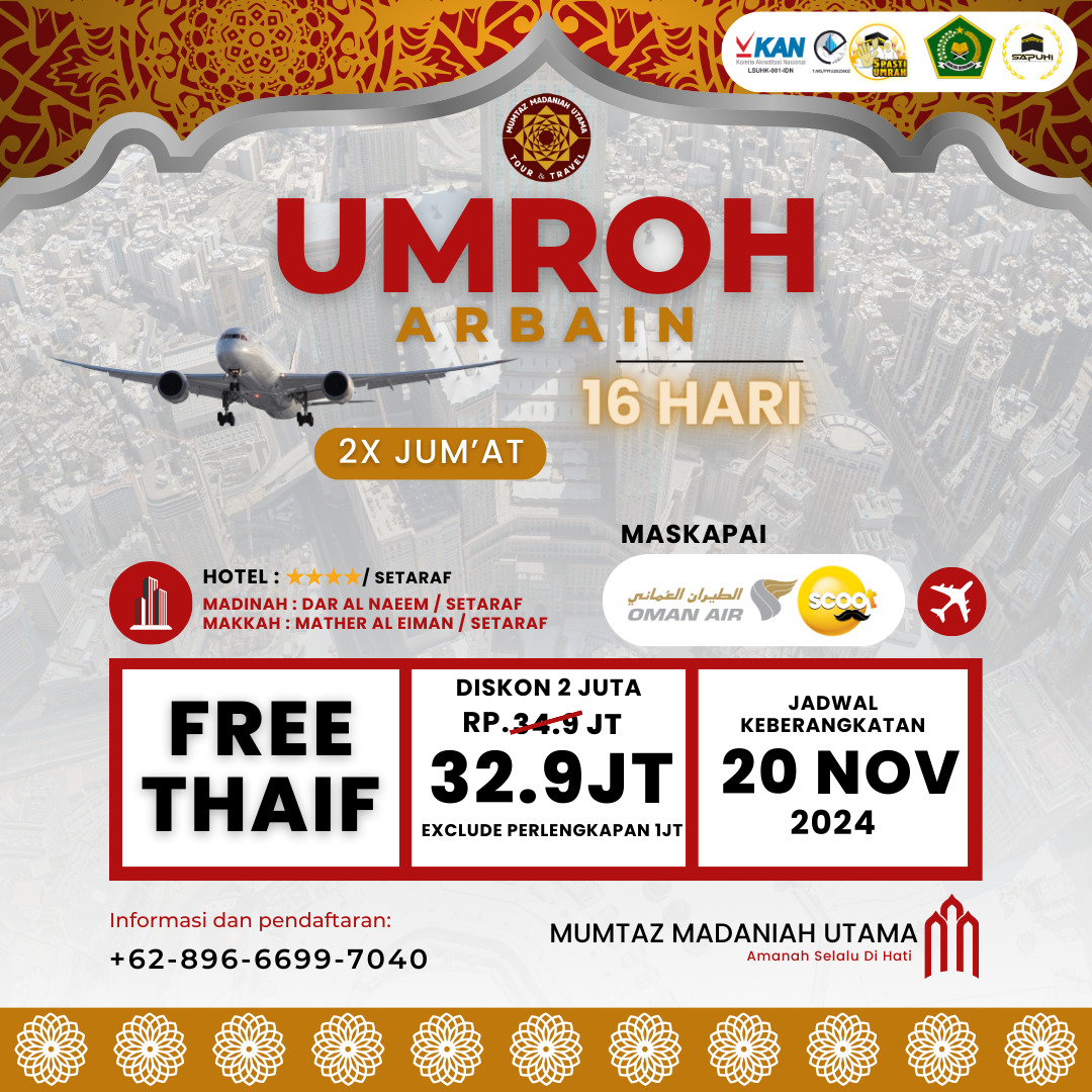 Paket Umroh (Seat Terbatas) Program umroh khusus yang memungkinkan calon jemaah untuk berangkat ke tanah suci tanpa harus menunggu...